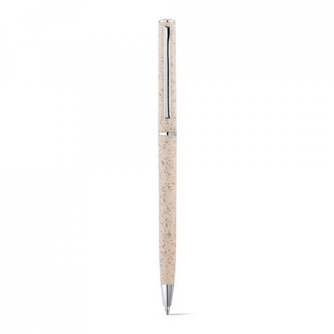 Hvetehalm og ABS kulepenn med klips. Svart skrift. Hos muybuenaidea tilbyr vi deg denne raffinerte og elegante reklamepennen, den er også økologisk fordi den er laget med en ny bioplast basert på hvetehalm. Den beste reklamegaven til din bedrift. Stol på vår femten års erfaring, og du vil motta bestillingen din når og hvor du vil, siden vi har en akutt service. I tillegg er alle virtuelle prøver og transport gratis.