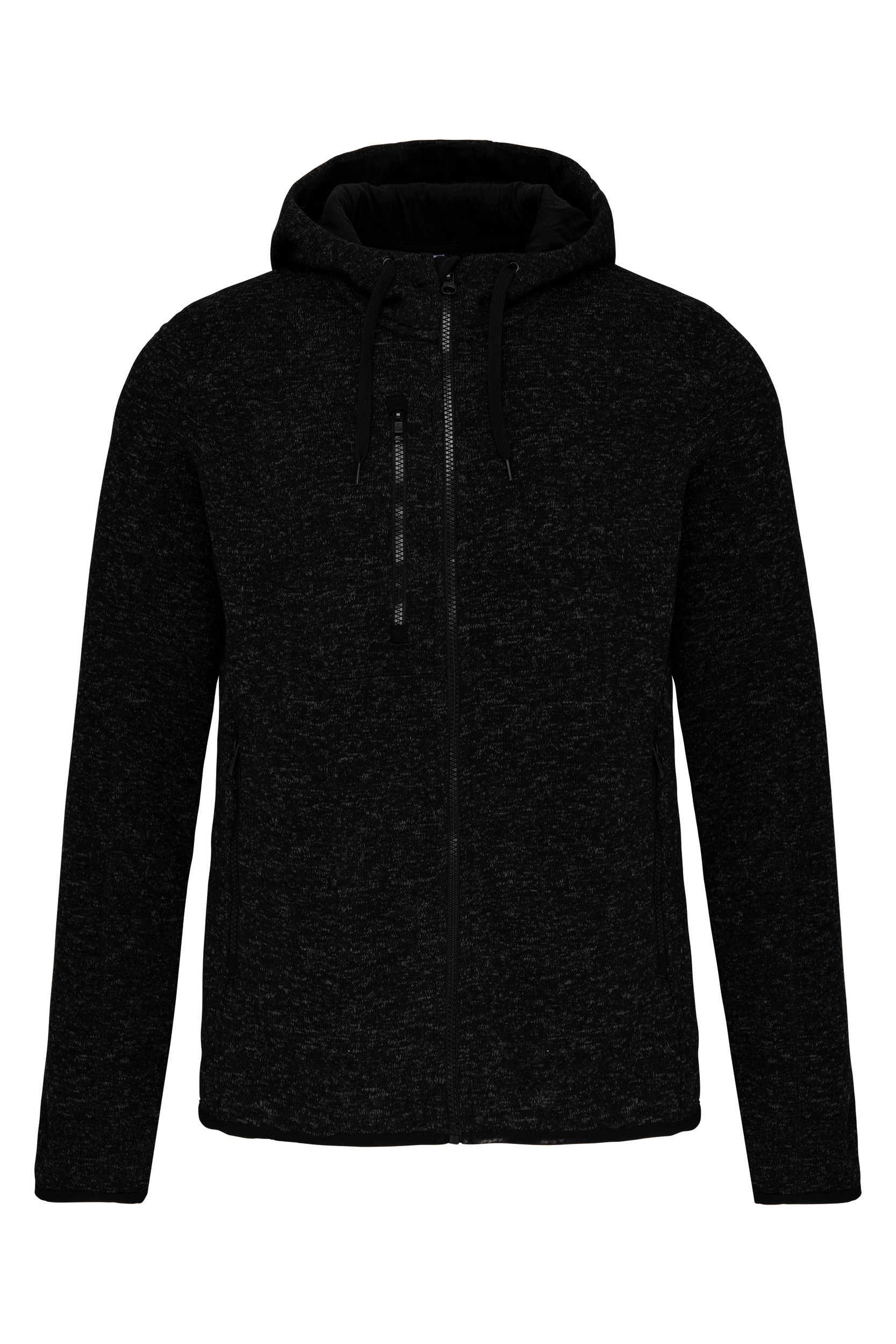 100 % polyester børstet innerstoff. To frontlommer med kontrastglidelås og en brystlomme med kontrastglidelås. Hette med kontrastfôr i 100% bomullsjersey og snøring i kontrast. Mansjetter og kant på plagget med kontrasterende elastisk finish. Dekkede sømmer på paneler. STANDARD 100-sertifikat av OEKO-TEX® nr. CQ1007/8, IFTH. 100 % polyester børstet innerstoff for større motstand og komfort. Hette med kontrast flat snøring.