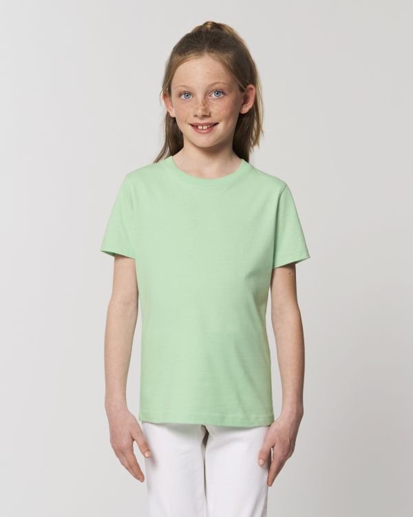 Den ikoniske t-skjorten for barn. Vanlig passform, rund hals, kortermet, enkel jersey strikk. Tilpassede ermer