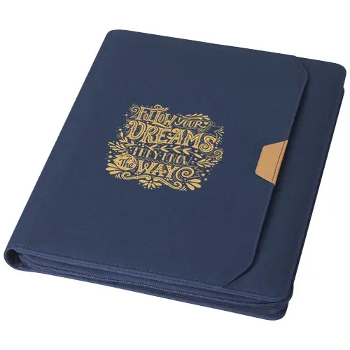 Den RCS sertifiserte Nomumi dokumentmappen er delvis laget av resirkulert tidligere brukt polyester, noe som gjør den til et mer bærekraftig valg siden den bidrar til å redusere bruken av nye råvarer. Med glidelåslukking, penneløkke, trekkspillomme og 20 hvitlinjede ark med 70 g/m2 resirkulert papir fra bærekraftige kilder. Pennen og annet tilbehør som vises på bildene er ikke inkludert i dette produktet.