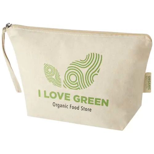 Orissa stor 180 g/m² økologisk tilbehørsveske med et stort rom med glidelås og en håndstropp for å enkelt bære den rundt. Posen er laget av bomull fra India som også er Oeko Tex sertifisert. Kapasitet: 3 liter.