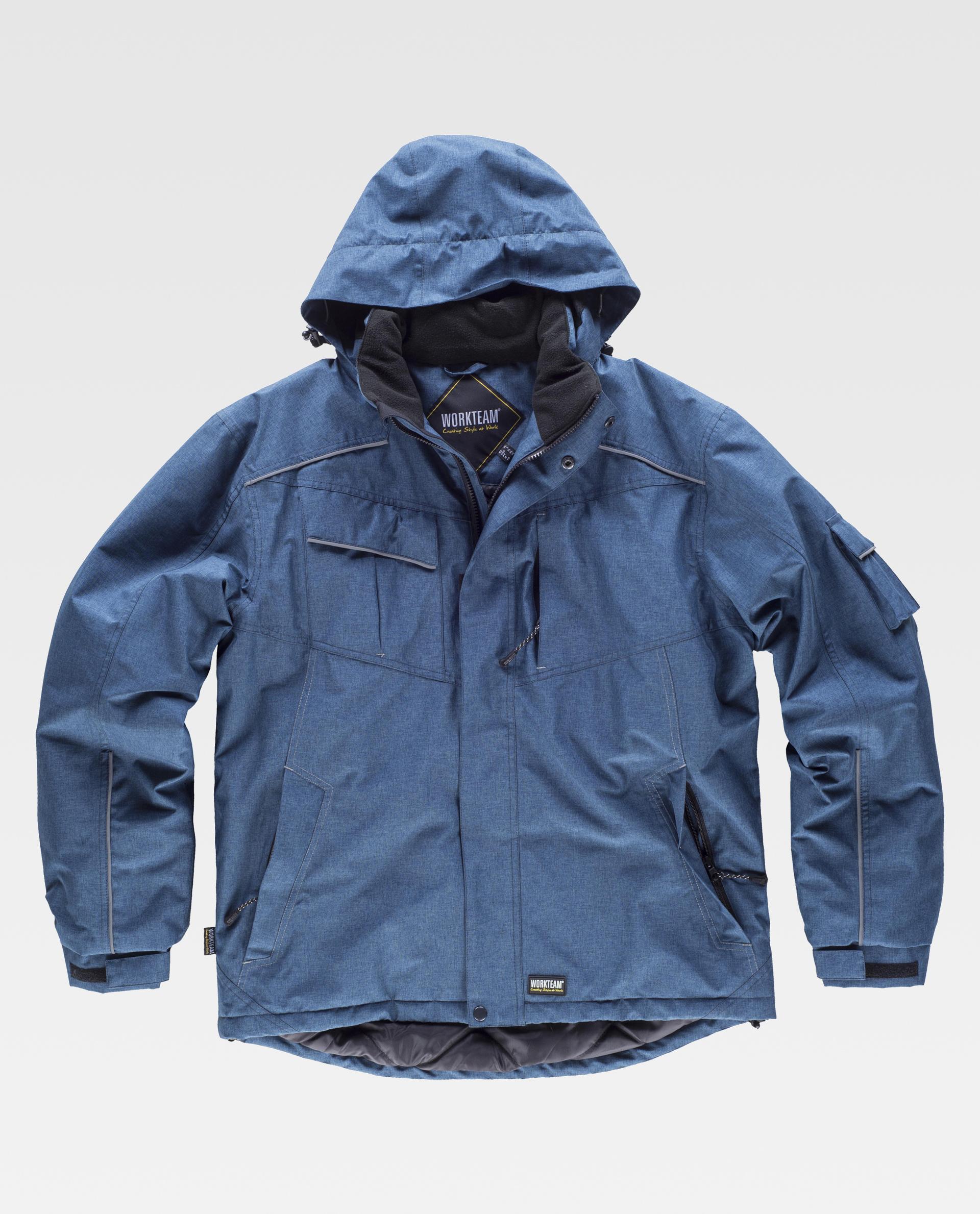 Vanntett, polstret parkas med piping og kontrastsøm. Høy fleecefôret krage og avtakbar hette med elastisk snøring og justerbar del. Bakstykke og skulderstykke avsluttet med piping. Nylon glidelås lukking skjult av en falsk klaff med kroker og borrelås. Indre beskyttelsesklaff slått opp øverst som dekker glidelåsen. En innvendig brystveske med nylonglidelåslukking og en annen med en sentral kile og en borrelåsklaff. To innvendige sidelommer med glidelås. En lomme på ermet med klaff og borrelås. Elastisk mansjett med borrelåsjustering. Elastisk snor med justerbart stykke i midjen. Vanntett, polstret parkas med piping og kontrastsøm. Høy fleecefôret krage og avtakbar hette med elastisk snøring og justerbar del. Bakstykke og skulderstykke avsluttet med piping. Nylon glidelås lukking skjult av en falsk klaff med kroker og borrelås. Indre beskyttelsesklaff slått opp øverst som dekker glidelåsen. En innvendig brystveske med nylonglidelåslukking og en annen med en sentral kile og en borrelåsklaff. To innvendige sidelommer med glidelås. En lomme på ermet med klaff og borrelås. Elastisk mansjett med borrelåsjustering. Elastisk ledning med justerbart midjestykke.