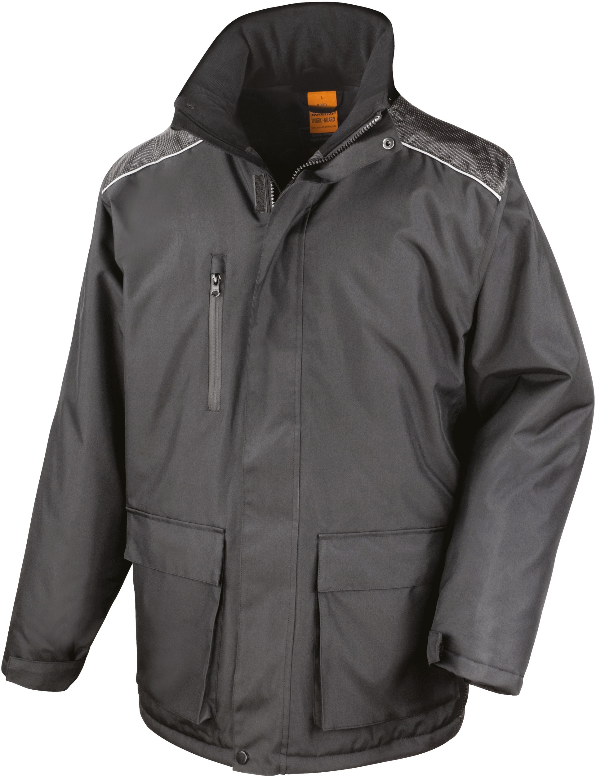 Eksteriør: 100 % 300D Oxford polyester med PVC-belegg. Fôr: 100 % 210T polyester taft. Isolasjon: 100% polyesterfyll. Vanntett opptil 2000 mm. Vindjakke. Vattert diamantfôr. Toveis glidelåslukking foran med stormklaff med borrelås og trykknapper. Strikk fôret krage. Justerbar og avtagbar hette med glidelås. Kontrasterende bærestykke i Dobby-stoff. Reflekterende trim. Flere lommer: frontlommer med stolpe og borrelåslukking, sidelommer for å holde hendene varme, innvendig brystlomme. Nederkant med snøring. Justerbare ribbestrikkede mansjetter med borrelåslukking. Avtakbare avtrekkere på alle glidelåslukkinger (inkluderer 4 farger av trekkere). Bredt snitt som gir god bevegelighet. Motstand mot ugunstige værforhold, optimal beskyttelse. Isolerende jakke med termisk vedlikehold.
