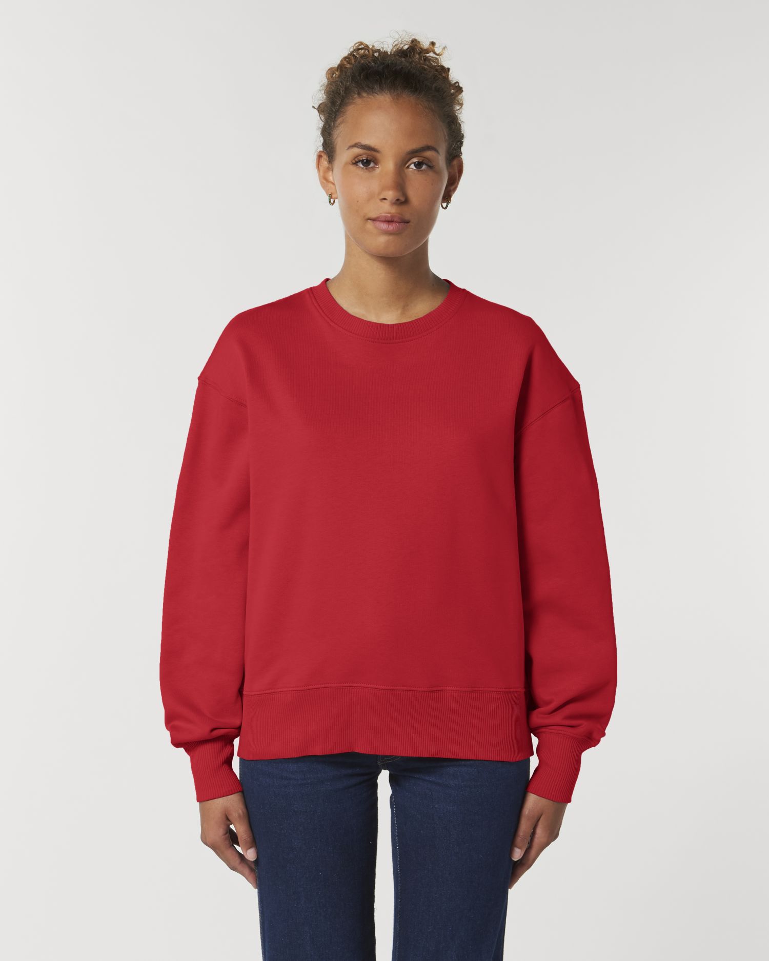 Den løse unixex genseren med rund hals. Løst snitt, rund hals, lange ermer, børstet fleece. Lukkede ermer 2x2 vrangbord i halsen, mansjetter og fald Fiskebein bak i nakken Inner halvmåne i hovedstoff Enkeltsøm i halsen Dobbeltsøm på ermhull og mansjetter