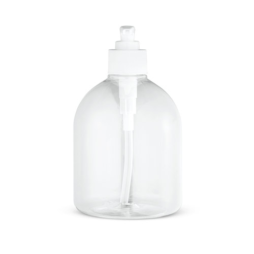 Flaske med dispenser laget av PE og PP, med en kapasitet på 500 ml. Oppladbar og gjenbrukbar.ø85 x 150 mm