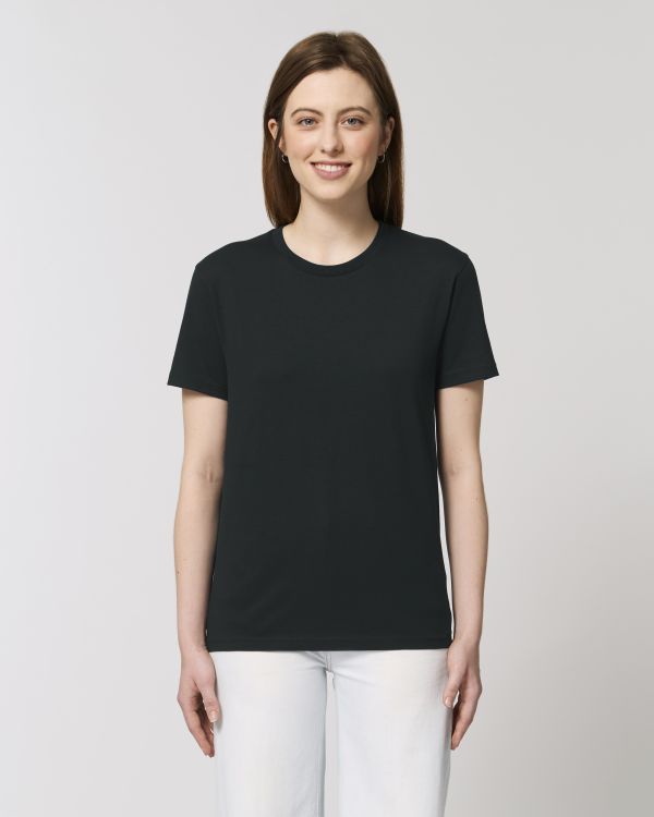 Den essensielle unisex t-skjorten. Vanlig passform, rund hals, kortermet, enkel jersey strikk. Tilpassede ermer 1x1 ribbet krage Skjevhet inne i hovedstoffet på halsen Tubular