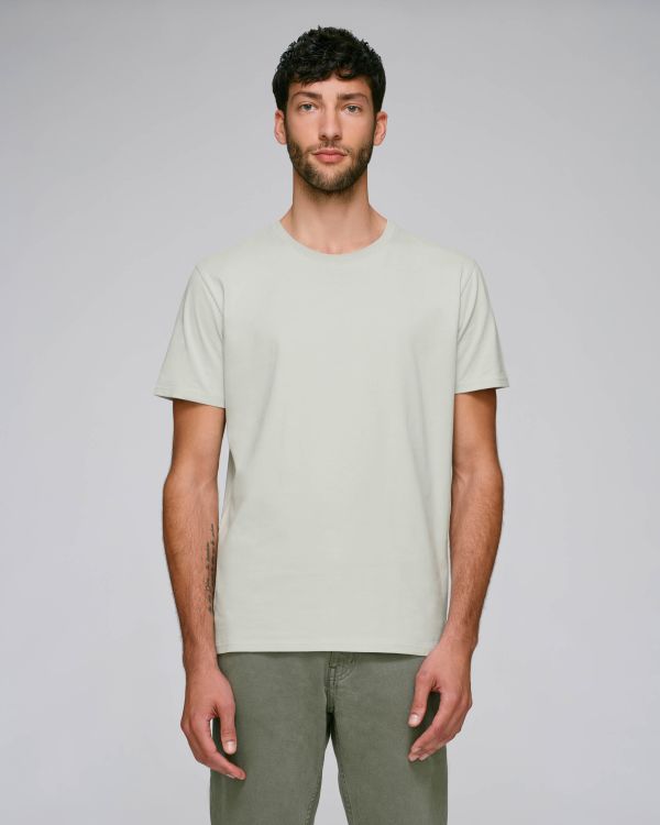 Tykk t-skjorte med rund hals. Vanlig passform, rund hals, kortermet, enkel jersey strikk. Tilpasset erme 1x1 vrangbordshals med dobbelnålssøm Twilltape på indre halsringning Flatlock-sydde mansjetter og fald Flatlock-sydde sidesømmer