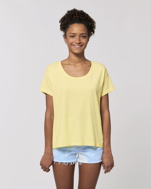 T-skjorten med rund hals til henne. Løs passform, Rund hals, Kortermet, Single jersey strikk. Raglanermer