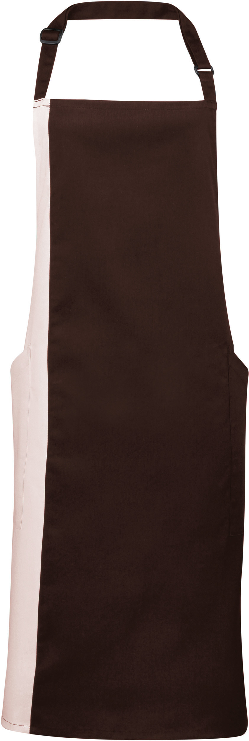 65 % polyester/35 % bomullstwill. Tofarget forkle. 2 stk 90 cm lange slips laget av samme materiale. Lengde: 86 cm. Bredde: 72 cm. Justerbar spenne To sidelommer foran med skrå åpning. Utskriftsområde på størrelse med en A4-side vertikalt i midten av plagget. Industrivask på 85°C. Husvask på 60°C. Twill-stoff: tilpasningsdyktig, motstandsdyktig og lettstelt. 2 praktiske sidelommer på den ene siden. Justerbar snøring i nakken.