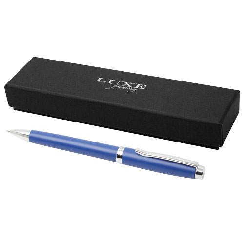 Slank kulepenn med eksklusiv design tilgjengelig i tre ledende farger. Forhåndsfylt med sort blekk, pakket i en ''LUXE''-gaveeske.